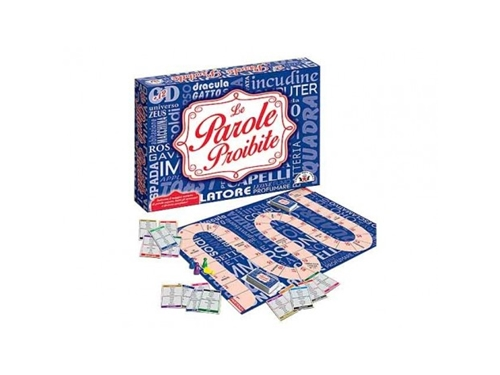 LE PAROLE PROIBITE 160 Carte 1 Cartellone plastificato Segnaposti in plastica Misura Scatola 40 x 32 x 5,5 cm Attenzione! Giocattolo non adatto ai bambini di età inferiore ai 36 mesi, trattasi di piccole parti che potrebbero essere ingerite o inalate. Pericolo di soffocamento.