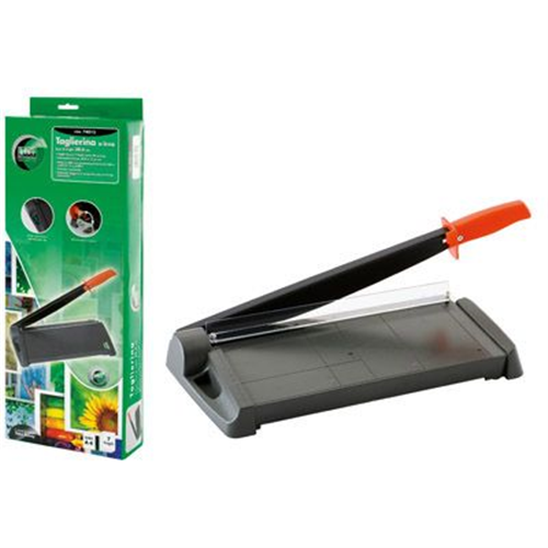 Taglierina a leva robusta,leggera e compatta con pressino manuale,sulla base in abs sono prestampati i formati uni e la scala in centimetri,taglia fino a 7 fogli da gr.80 conuna luce di taglio di cm.30,6.