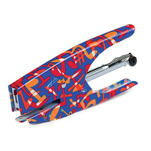 Cucitrice manuale a pinza passo 6,versione punto chiuso, realizzata interamente in acciaio cromato e rivestita con una particolare tecnicadi finitura. punto utilizzato 64 -48 universale. capacità di carica 200 punti. capacità di cucitura: 2-15 fg. gr. 80. profondità di gola mm. 50. divertenti, coloratissime con i loro evidenti richiami alla popart, sono firmate da ugo nespolo, uno dei più grandi artisti italiani contemporanei.