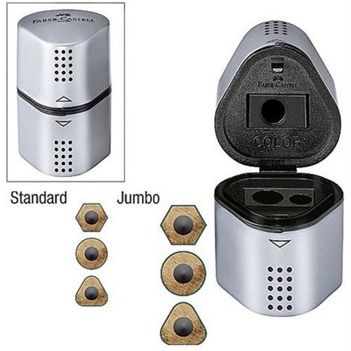 Temperamatite Grip Faber Castell 183800 - 3 fori - con contenitore - argento
