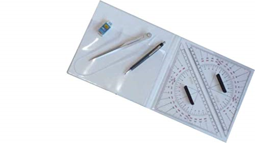 Set FARA Corredo Patente Nautica - 2 Squadre Nautiche in Plastica con Numerazione Incisa + 1 Compasso Nautico Doppia Punta + Matita Graphos 2mm + Gomma