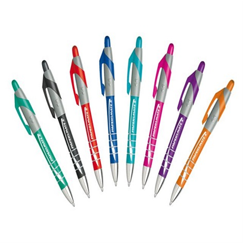 Sfera a scatto, punta 1,4mm. unisce la scorrevolezza di scrittura di un gel alla pulizia della sfera. fusto in gomme e grip per una presa ottimale.