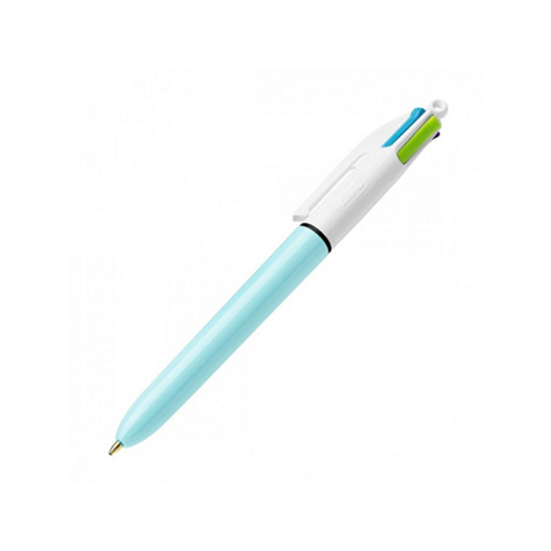 Penna Bic FourColurs Bic Fun - colori di scrittura viola/rosa/azzurro/verde chiaro - fusto azzurro