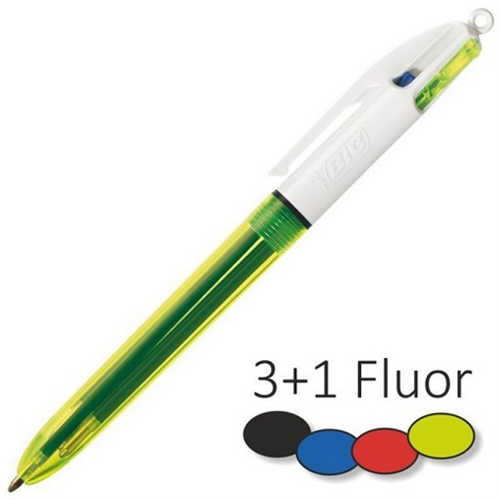 Penna Bic 4 Colours Flou 1,00mm/1,6mm - fusto giallo flou - colori di scrittura: blu - nero - rosso - giallo flou