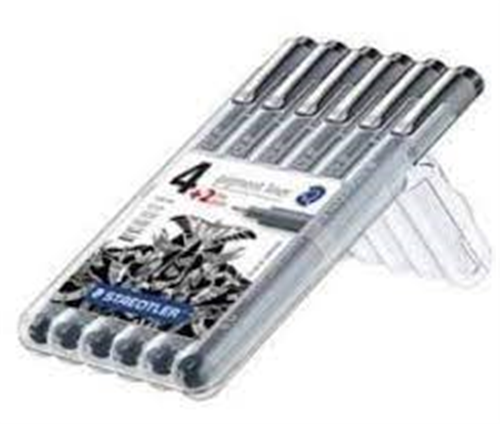 Confezione in plastica con 4 penne a punta sintetica graduata per scrittura e disegno tecnico con inchiostro pigmentato nero per documenti + 2 in omaggio. Tratti assortiti: 0,05 - 0,1 - 0,2 - 0,3 - 0,5 - 0,8.