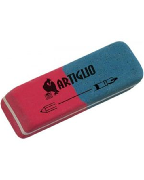 Gomma in vinile rossa/blu per matita e inchiostro.