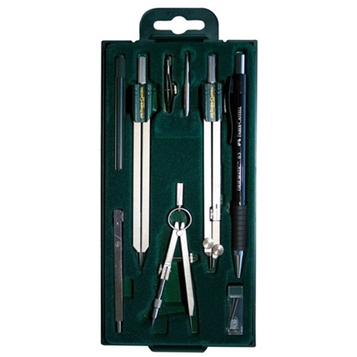Qualità e funzionalità abbinate ad un design sofisticato: questo é il motto di Faber-Castell. Anche per quanto riguarda i compassi, il leader di mercato si mantiene al passo con le ultime tendenze. Oltre al design ricercato, Faber-Castell offre una robusta tecnologia: aste robuste, ruota centrale, aghi antiscivolo e morsetti per le mine per tracciare linee esatte. Questi sono gli standard qualitativi di tutti i compassi Faber-Castell. Compassi profilati in ottone 100% Finemente satinato con nichelatura antiriflesso Garanzia a vita con accessori e ricambi all`interno Assoluta precisione e alta qualitá Compassiera 9 elementi