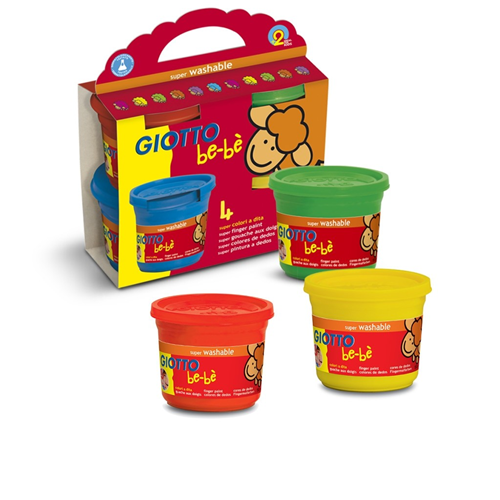 Fila Giotto Be Bè confezione 4 barattoli colori a dita 467200 - Supercolori a dita con nuova formulazione superlavabile da mani e tessuti. Sicuri e dermatologicamente testati sono gradevolissimi al tatto e quindi ideali per i bambini piu' piccoli. Confezione da 4 barattoli da 150 ml nei colori GIALLO, VERDE, ROSSO E BLU. Tutti i barattoli sono dotati di tappo a pressione per una tenuta ottimale.