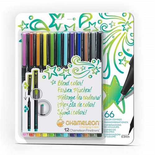 Contiene 12 penne Chameleon Fineliner che creano 15 combinazioni di sfumature di colore.