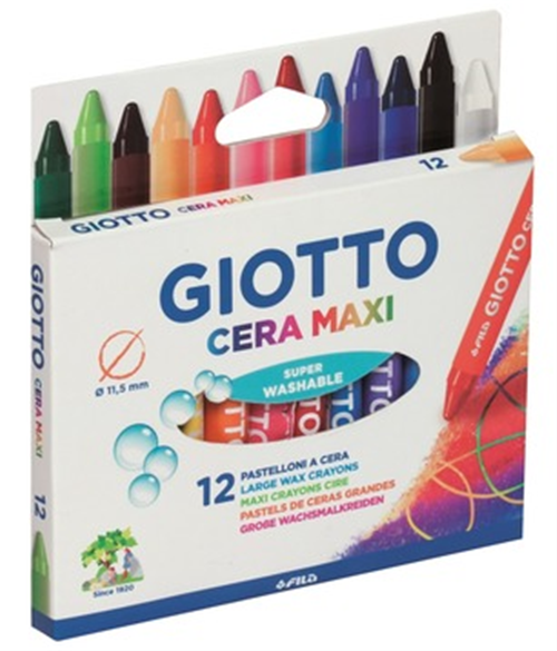 Maxi pastello a cera tondo, rivestito singolarmente con carta protettiva nel colore del pastello. Diametro 11,5 mm, lunghezza 100 mm. Formato gigante, facile da impugnare. Colori ricchi, morbidi e coprenti. L'ottima qualità delle cere utilizzate rende questi pastelli facili da stendere e perfetti per tutte le tecniche di coloritura. Formula lavabile dalle mani con acqua e sapone, lavabile dalla maggior parte dei tessuti in lavatrice con ciclo a 40 gradi. Eventuali tracce su superfici non porose posso essere facilmente rimosse con un panno umido, per macchie particolarmente resistenti utilizzare uno sgrassatore.