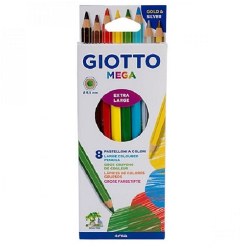 Un grande disegno ha bisogno di una grande matita con una mina gigante Giotto mega mina 5,5 mm ha una maxi riserva di colore. Il pastellone gigante esagonale è verniciato nel colore della mina con spigoli dorati.