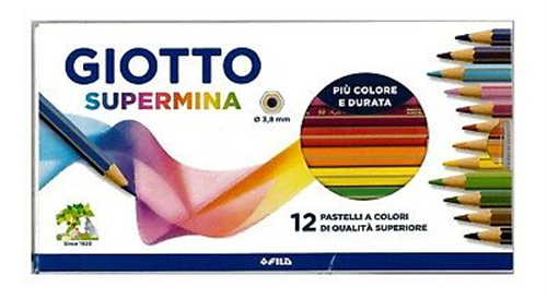 GIOTTO SUPERMINA. QUANDO IL GIOCO SI FA CREATIVO, I CREATIVI INIZIANO A COLORARE! Il top della matita Giotto, perché quando si crea è meglio esagerare, e farlo con le maxi-mine dei pastelli Giotto Supermina. Ottima resa e lunga durata, con la sua mina extra-large di qualità superiore – del diametro di 3,8 mm – facile da temperare, estremamente ergonomica.