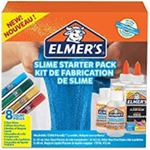 la confezione contiene: 2 flaconi di colla trasparente da 147 ml, 2 flafoni magical fluid da 68 ml, assortimento di 4 tubetti di colla brillantini colorati