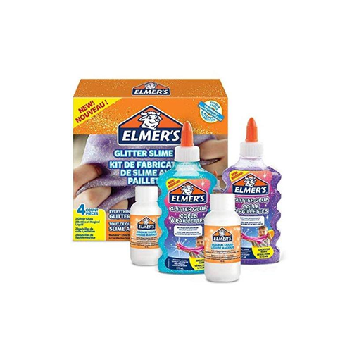 Realizza slime con un'esplosione di colore e brillantezza senza ingredienti aggiuntivi! La colla glitterata è dotata di formula lavabile ed è adatta ai bambini (non indicata per bambini sotto i 3 anni) Formula omogenea che non sgocciola, per ore e ore di divertimento con lo slime senza sporcare Il liquido magico Elmer's è una soluzione tutto in uno che attiva la colla Elmer's e la trasforma in uno slime irresistibilmente divertente Il kit per slime include: 1 flacone di colla glitterata viola (177 ml), 1 flacone di colla blu (177 ml) e 2 flaconi di liquido magico (68 ml ciascuno)