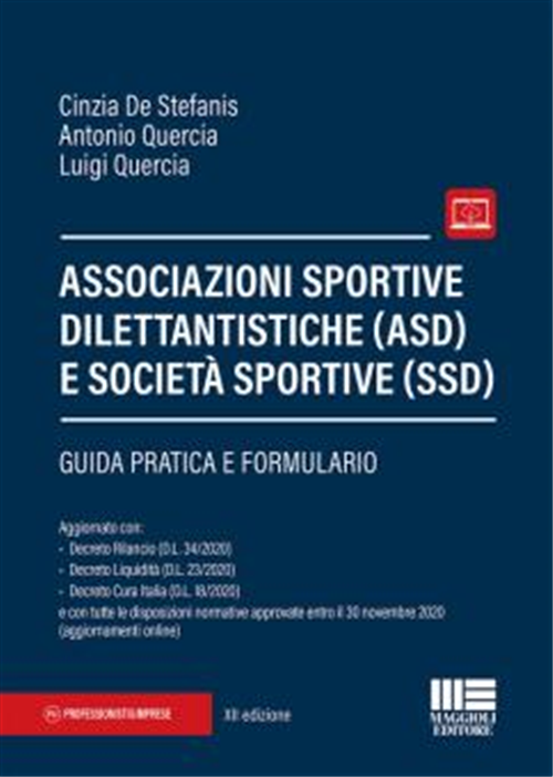 Strutturato in forma operativa, il testo risponde alle diverse domande sulla costituzione e gestione di un'associazione sportiva dilettantistica (ASD) o di una società sportiva dilettantistica (SSD) e sulle differenze tra le due forme giuridiche, sia dal punto di vista dell'impostazione strutturale che delle conseguenze applicative e dei riflessi sull'attività quotidiana. Coniugando l'aspetto di dottrina a quello di prassi, con taglio pratico, il manuale fornisce i giusti orientamenti nella complessa normativa civilistica e fiscale. La trattazione - arricchita da facsimile di statuti, contratti e modelli - guida il lettore, suggerendo spunti di analisi e approfondimenti, grazie a frequenti riquadri esplicativi dei temi trattati: le f.a.q., le avvertenze, il cavillo giuridico, la prassi, le tabelle riassuntive, la casistica della rubrica "in pratica". Nell'apposito spazio online sono disponibili per il lettore ben 120 formule personalizzabili, che costituiscono il facsimile da utilizzare per redigere atti costitutivi, statuti, contratti, verbali, domande, certificazioni, atti, lettere e comunicazioni relative all'attività di ASD e SSD.