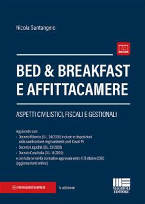 Il volume è una guida completa e affidabile sugli aspetti normativi, amministrativi, contabili e fiscali che è indispensabile padroneggiare per avviare e condurre al successo un B&B o un affittacamere: non a caso, l'Autore propone anche utili approfondimenti sulla gestione imprenditoriale e promozionale dell'attività. Le regole per avviare un B&B o un affittacamere variano da regione a regione: per ognuna di esse, sono riportate le necessarie informazioni e gli opportuni suggerimenti. Importante è anche il profilo contabile e tributario, che assume sfumature differenti a seconda del tipo di attività esercitata, sulla base dei diversi regimi fiscali attualmente previsti dal legislatore ed oggetto di specifica trattazione. Un capitolo è dedicato alle agevolazioni e ai finanziamenti del settore, argomento che non può prescindere dalla realizzazione di un adeguato business plan, un documento in grado di fornire dati fondamentali sulla fattibilità dell'idea imprenditoriale. Altrettanto decisiva è la promozione dell'impresa, a cominciare dalla creazione di un sito Web: il testo infatti insegna anche a fare marketing, a fidelizzare al meglio la clientela, a presentare il B&B sui social network e portali, ad aumentare vendite e profitti. In questa edizione l'autore ha approfondito il tema dei "B&B in condominio", illustrando i principi di ordinamento civile e dando evidenza dell'importanza del regolamento condominiale e dei limiti e divieti che da questo possono derivare. Un capitolo apposito è stato infine dedicato alla ripartenza dei B&B dopo l'emergenza Coronavirus. Esaminando le iniziative attuate dal legislatore per aiutare il settore del turismo, l'autore ha focalizzato la propria attenzione sulla gestione delle prenotazioni annullate a causa del Covid-19, sulla ripartenza (sanificazione) e sull'opportunità di attuare strategie per ridurre i rischi di inattività (polizza assicurativa). A chiusura, due sezioni di carattere ancor più operativo: le risposte ai quesiti più frequenti (FAQ) e una serie di schede informative, con dati e statistiche che potranno rivelarsi di grande utilità per le opportune valutazioni di sviluppo commerciale e di marketing. Questa quinta edizione è aggiornata inoltre con: le più recenti possibilità di finanziamento per l'attività ricettiva; le ultime Leggi Regionali.