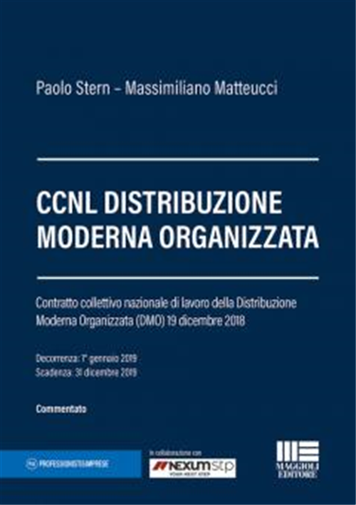 Il volume fornisce il commento dettagliato ai principali articoli del CCNL della Distribuzione Moderna Organizzata (DMO) - rinnovato in data 19 dicembre 2019 - e chiarisce le motivazioni e la ratio della disciplina concordata tra le parti. Contratto collettivo nazionale di lavoro della Distribuzione Moderna Organizzata (DMO) 19 dicembre 2018 ARGOMENTI TRATTATI Contratto collettivo nazionale di lavoro della Distribuzione Moderna Organizzata (DMO) sottoscritto in data 19 dicembre 2019 da Federdistribuzione e FILCAMS - CGIL, FISASCAT - CISL e UILTUCS - UIL. PAOLO STERN Consulente del Lavoro in Roma. Presidente Nexumstp Spa. Autore di numerose pubblicazioni in materia di lavoro e relatore a convegni e seminari. Professore a contratto presso università pubbliche e private. MASSIMILIANO MATTEUCCI Consulente del Lavoro in Roma. Partner Nexumstp Spa. Cultore della materia e professore a contratto presso università pubbliche e private. Autore di numerose pubblicazioni in materia di lavoro e relatore a convegni e seminari.