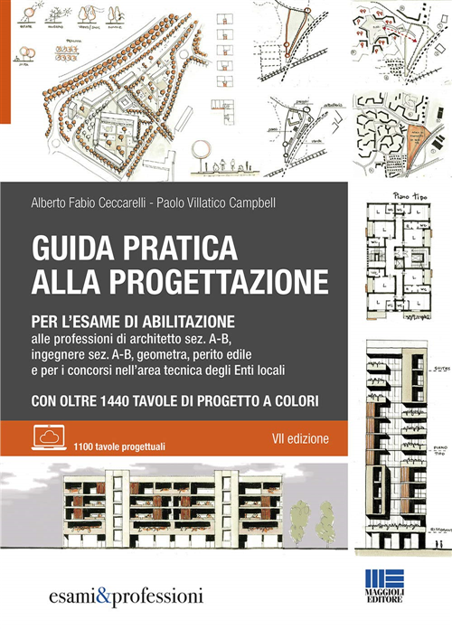 Qualificato testo di riferimento per la progettazione architettonica, urbanistica e di recupero/restauro, la "Guida pratica alla progettazione" è lo strumento per prepararsi all'esame di Stato per architetti, pianificatori, paesaggisti, conservatori e per ingegneri civili/edili, laurea triennale e quinquennale. Questa settima edizione, totalmente rinnovata, è stata rivista nella parte teorico-concettuale, nei contenuti progettuali e nella pubblicazione di 335 nuove tavole di progetto. La Guida è articolata in due volumi: il Manuale di progettazione affronta in chiave concettuale e normativa le principali tematiche urbanistiche, architettoniche e di recupero/restauro, legate al superamento della prova grafica dell'esame di Stato. In tal senso il volume risulta totalmente rinnovato rispetto alle edizioni precedenti, con un nuovo indice, nuovi schemi concettuali e progettuali, un rinnovato capitolo sull'efficienza energetica, unitamente ad un sostanziale aggiornamento normativo relativo all'edilizia, sulla base del nuovo regolamento unico nazionale, delle normative sul superamento delle barriere architettoniche e delle innovazioni relative alla materia antincendio. Ampio spazio è dedicato agli strumenti urbanistici, con una guida alla redazione dei corretti conteggi, oltre all'aggiornamento dei dati di standard minimi nazionali e regionali. Aggiornato anche il capitolo sulle tecniche grafiche tradizionali, con una nuova guida alla realizzazione di prospettive a mano libera; il secondo volume raccoglie 335 nuove tavole di progetto a colori. Collegato al volume, un sito web dedicato (esamearchitetto.it) dove sono pubblicati 4 progetti relativi a un tema progettuale, un tema urbanistico tradizionale, un tema di recupero e un tema urbanistico con i principi di perequazione/compensazione, corredati dai commenti degli autori sulle strategie seguite in sede d'esame. Il sito web raccoglie inoltre le 1110 tavole che costituiscono le migliori elaborazioni pubblicate nelle precedenti sei edizioni, anch'esse utilizzabili come spunto ideativo grafico e concettuale. Assieme alle tavole, è presente anche la parte relativa alla differente organizzazione d'esame per architetti e ingegneri rispetto alle varie sedi, unitamente alle statistiche percentuali di abilitati, aggiornate al 2018.