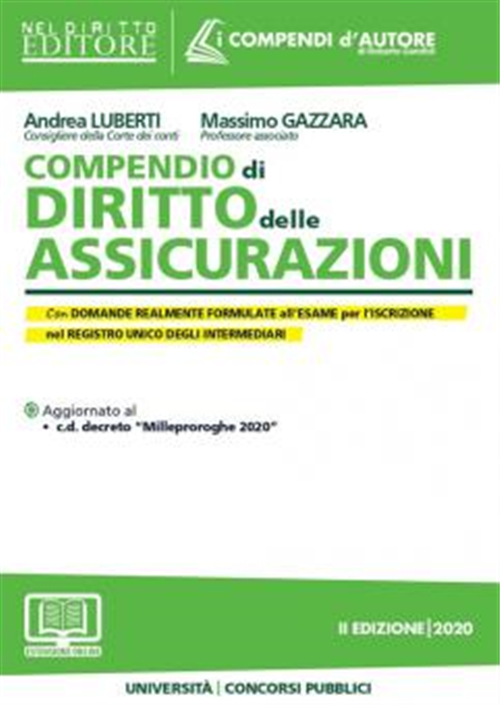 Il diritto delle assicurazioni è una materia che, negli ultimi anni, è stata interessata sia dalla cristallizzazione in un codice organico che da successivi interventi normativi, frequenti e non di rado estemporanei. Il Compendio di diritto delle assicurazioni è articolato in venti capitoli, che tratteggiano le linee essenziali (privatistiche e pubblicistiche) della legislazione assicurativa: esse spaziano dalla definizione dell'indagine al sistema delle fonti, dalla disciplina (generale e speciale) del contratto a quella del mercato descrivendo, sotto diversi profili, il regime giuridico dell'attività dei soggetti coinvolti (enti pubblici, imprese, intermediari e periti di assicurazione). Il Compendio intende infatti fornire al lettore (giurista od operatore del mercato) un'analisi, al contempo, sintetica, approfondita e aggiornata di un settore del diritto contraddistinto da una crescente importanza nell'economia moderna e da una rilevante complessità.