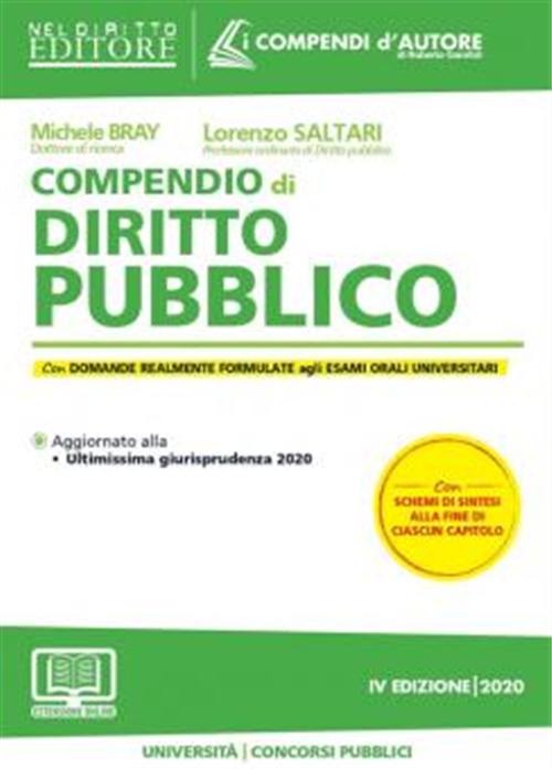 Il "Compendio di istituzioni di diritto pubblico", di Michele Bray, si inserisce nella collana "I compendi d'autore", destinata a chi si appresta alla preparazione degli esami orali per l'università, per avvocato, per il concorso di magistrato e per i concorsi pubblici. Il volume fornisce una analisi completa e, tuttavia, sintetica e schematica, della disciplina, degli istituti di parte generale e speciale, con segnalazione anche della giurisprudenza più significativa illustrata in appositi focus. Il compendio è stato redatto per agevolare una rapida memorizzazione con l'esposizione "per punti" delle principali tesi emerse in dottrina e in giurisprudenza sulle questioni più problematiche: è frequente, inoltre, l'uso di grassetti e corsivi per i concetti-chiave di ogni singolo istituto; consente, infine, di saggiare il livello di preparazione, fornendo, per ciascun capitolo, le domande più probabili e ricorrenti su cui è utile che gli aspiranti avvocati, magistrati, funzionari e dirigenti si esercitino.
