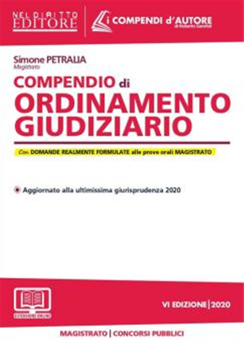Il "Compendio di ordinamento giudiziario", di Simone Petralia, si inserisce nella collana "I Compendi d'Autore", destinata a chi si appresta alla preparazione degli esami orali per l'università, per Avvocato, per il concorso di Magistrato e per i concorsi pubblici. Il volume fornisce una analisi completa e, tuttavia, sintetica e schematica, della disciplina, degli istituti di parte generale e speciale, con segnalazione anche della giurisprudenza più significativa illustrata in appositi Focus. Il Compendio è stato redatto per agevolare una rapida memorizzazione con l'esposizione "per punti" delle principali tesi emerse in dottrina e in giurisprudenza sulle questioni più problematiche: è frequente, inoltre, l'uso di grassetti e corsivi per i concetti-chiave di ogni singolo istituto; consente, infine, di saggiare il livello di preparazione, fornendo, per ciascun capitolo, le domande più probabili e ricorrenti su cui è utile che gli aspiranti avvocati, magistrati, funzionari e dirigenti si esercitino. Nella stessa Collana: Diritto civile, Diritto amministrativo, Diritto processuale civile, Diritto processuale penale e tanti altri.