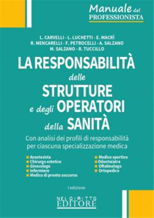 La molteplicità di specializzazioni in ambito sanitario, alla quale si accompagna una straordinaria varietà di obblighi, ha consigliato un esame specifico delle principali figure professionali. L'opera esamina, quindi, le responsabilità dell'anestesista, dell'odontoiatra, del chirurgo estetico, dell'infermiere, del medico sportivo, dell'ortopedico, del ginecologo, del medico di pronto soccorso nonché dell'oftalmologo. Tale impostazione consente di offrire un quadro esauriente e al contempo agile delle principali questioni applicative che la complessa materia della responsabilità sanitaria prospetta. L'opera si pone l'obiettivo di fornire ai Professionisti, non solo giuristi ma anche sanitari, e alle strutture sanitarie, una completa risposta a ciascun quesito interpretativo e applicativo della normativa vigente.