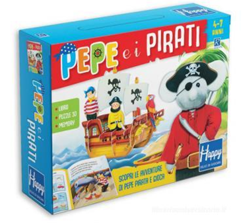 Leggi la storia e scopri le avventure di Pepe Pirata, poi gioca con il memory "I dobloni dei pirati" con 20 tessere e le immagini di Pepe e i suoi amici. Monta il vascello dei pirati e... all'arrembaggio! Età di lettura: da 3 anni.