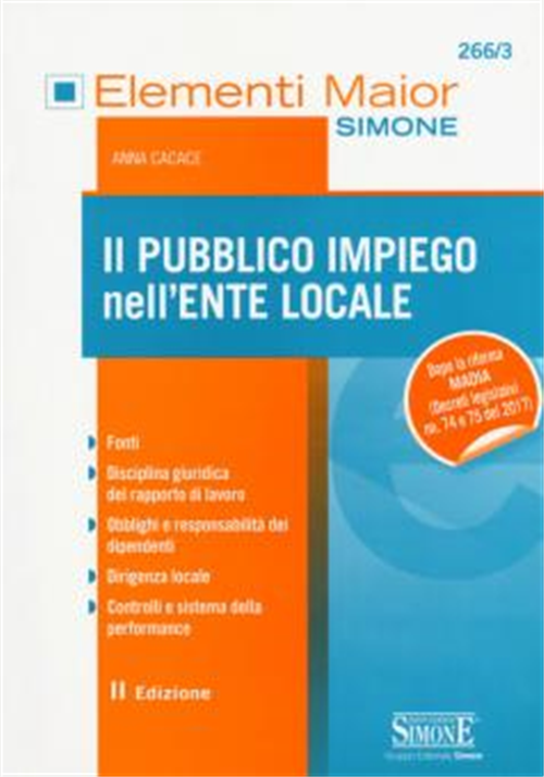 Il volume, suddiviso in quattro parti, illustra la normativa sul personale alle dipendenze degli enti locali partendo dall’analisi dell’evoluzione normativa della materia, nei suoi aspetti più significativi, nonché dallo studio dei principi fondamentali e delle fonti. La parte seconda del testo ha per oggetto la regolamentazione giuridica del rapporto di lavoro, ovvero la disciplina dei diritti patrimoniali e non patrimoniali che sorgono all’instaurazione del rapporto di pubblico impiego, e dei profili attinenti le responsabilità e gli obblighi dei pubblici dipendenti su cui ha fortemente inciso il D.Lgs. 25 maggio 2017, n. 75 di modifica e integrazione del Testo unico sul pubblico impiego (D.Lgs. 165/2001). La trattazione prosegue (parte terza) con la normativa relativa alla dirigenza e alle altre figure di vertice nell’organizzazione burocratica dell’ente locale e del sistema dei controlli e valutazione della performance, analizzato alla luce del D.Lgs. 25 maggio 2017, n. 74, attuativo della riforma Madia. Completa il volume un capitolo unico sui profili giurisdizionali attinenti il lavoro pubblico e un’appendice normativa che illustra il decreto Brunetta (D.L.gs. 150/2009) come modificato dal decreto legislativo, n. 74.