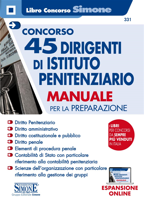 Il volume contiene: Diritto penitenziario Diritto amministrativo Diritto costituzionale e pubblico Diritto penale Elementi di procedura penale Contabilità di Stato, con particolare riferimento alla contabilità penitenziaria Scienze dell'organizzazione, con particolare riferimento alla gestione dei gruppi