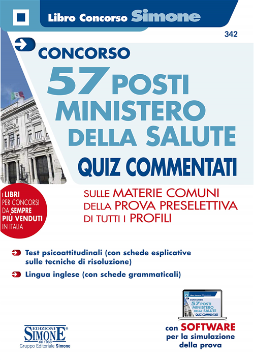 Il Ministero della salute, nella Gazzetta Ufficiale 23 giugno 2020, n. 48, ha indetto un concorso per la copertura di 57 posti di personale non dirigenziale di vari profili professionali, da inquadrare nella terza area funzionale, fascia retributiva F1 del ruolo dei dipendenti. I posti messi a concorso sono suddivisi fra i seguenti profili: 2 funzionari della comunicazione (esperti in materie sanitarie); 12 funzionari economico-finanziari di amministrazione (esperti in materie sanitarie); 10 dieci funzionari giuridici di amministrazione (esperti in materie sanitarie); 6 funzionari informatici (esperti in materie sanitarie); 11 ingegneri biomedici; 5 funzionari dei servizi tecnici (esperti in materie sanitarie); 2 funzionari per i rapporti internazionali (esperti in materie sanitarie); 9 funzionari statistici (esperti in materie sanitarie). Questo testo contiene quiz commentati di carattere psicoattitudinale (con schede esplicative sulle tecniche di risoluzione) e sulla Lingua inglese (con schede grammaticali), oggetto, insieme alle materie specialistiche, della prova preselettiva comune a tutti i profili. Grazie alle infinite simulazioni offerte dal software, contenente tutti i quiz presenti nel Manuale, sarà poi più facile esercitarsi in vista della prova d'esame.