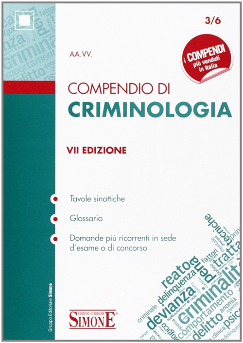 La criminologia è la scienza che studia i reati, gli autori, le vittime, i tipi di condotta criminale (e la conseguente reazione sociale) e le forme possibili di controllo e prevenzione. È una disciplina sia teorica che empirica, sia descrittiva che esplicativa, sia normativa che fattuale. Questo compendio, giunto alla VII edizione, tenuto conto della sempre maggiore importanza nella formazione universitaria e postuniversitaria, fa il punto sulla più nota manualistica del settore, offrendo una panoramica ampia e sistematica sullo studio della criminalità, soprattutto riguardo alla sua fenomenologia, nonché ai sistemi di controllo sociale e agli interventi risocializzativi con particolare attenzione all'istituto della mediazione penale ed agli interventi di prevenzione giudiziaria ed extragiudiziaria. Poiché la connotazione multidisciplinare della materia rende alcuni testi di non facile apprendimento, il testo si giova di una stesura espositiva lineare per favorire l'approccio anche a chi si avvicina per la prima volta alla materia. Anche questa nuova edizione, pur rimanendo inalterata nella struttura, presenta una serie di questionari contenenti le domande più ricorrenti in sede di esame o di concorso. Il testo, si giova, inoltre, di tabelle riepilogative e di un utile glossario con le spiegazioni dei termini più specialistici nonché brevi note bibliografiche dei più significativi autori del settore.