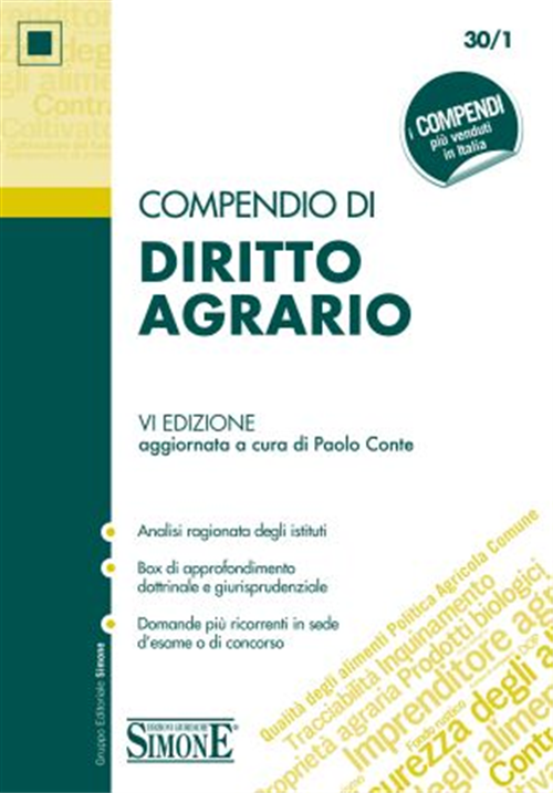 In nessuna disciplina come quella del Diritto agrario si è assistito negli ultimi anni ad una «rivoluzione» totale: sia a seguito delle numerose innovazioni tecnologiche del settore primario, sia per il progressivo, massiccio e costante ingresso delle norme sovranazionali, soprattutto europee, che hanno completamente trasformato il volto della materia. Questo volume, sensibile agli eventi maturatisi, offre un quadro istituzionale complessivo e aggiornato di una materia che, oltre a costituire un importante strumento di primo aggiornamento per gli operatori del settore, è oggetto dei piani di studio di diverse facoltà universitarie e che purtroppo, malgrado la sua centralità, si giova non sempre di crediti adeguati. Alla luce di queste considerazioni è stato dato alle stampe questo agile, ma completo «compendio» che segue i programmi dei principali atenei italiani. Tra le più recenti e significative novità normative segnaliamo: il Pacchetto legislativo della PAC 2014/2020; il D.L. 51/2015, conv. in L. 91/2015, che ha modificato la disciplina delle organizzazioni interprofessionali. Completa il volume una utile Appendice normativa contenente le norme di diritto agrario che costituiscono i principali riferimenti operativi del settore.