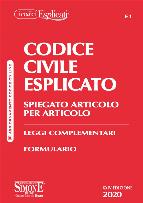 Questa XXIV edizione del Codice Civile Esplicato aggiornato ai più recenti interventi normativi e giurisprudenziali mantenendo inalterata la formula di «esplicazione» consente, contestualmente allo studio manualistico, un immediato e costante confronto con le norme codicistiche. Il lavoro, infatti, con l'ausilio degli apparati di commento, si pone l'obiettivo di avvicinare gli studenti universitari al testo normativo nonché di risolvere i dubbi di operatori e cultori del diritto, fornendo gli strumenti necessari per fare il punto sugli istituti del diritto civile attraverso un'analisi della giurisprudenza più recente e della dottrina più significativa. Tra gli accorgimenti metodologici e tipografici segnaliamo: l'uso di caratteri chiari e leggibili per una lettura più scorrevole del testo; opportune definizioni che agevolano la comprensione dell'articolo; un ampio corredo di note esplicative a completamento dell'analisi del testo normativo; essenziali collegamenti ed opportuni rinvii alle definizioni, agli altri articoli, nonché puntuali riferimenti alle formule dei principali atti e alle leggi speciali riportate in Appendice; tavole introduttive e riquadri di approfondimento (riportati su fondo grigio) per individuare la ratio di ogni singola disposizione; un'Appendice con una mirata selezione di norme complementari arricchite da brevi introduzioni e note esplicative; un breve formulario dei principali atti civili. Punto di forza del lavoro è costituito dall'indice analitico-alfabetico che accanto ad un puntuale indice cronologico agevolano la ricerca e la comprensione delle norme.
