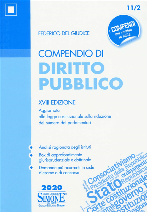 Il Compendio di Diritto Pubblico, giunto alla XVIII edizione, offre una panoramica completa della disciplina tenendo conto delle più recenti novità legislative e giurisprudenziali. La trattazione, impostata secondo la più diffusa e affermata manualistica, unisce al rigore scientifico un'esposizione chiara e lineare. Ulteriori punti di forza del volume sono le domande più ricorrenti in sede di esame o di concorso che, alla fine di ciascun capitolo permettono una verifica immediata del livello di apprendimento della materia, e i box di approfondimento, concepiti per richiamare l'attenzione del lettore sulle tematiche di maggiore attualità e al centro del dibattito politico-istituzionale. Per tali caratteristiche, il testo costituisce un valido strumento di studio e consultazione per gli studenti universitari e partecipanti a concorsi pubblici.