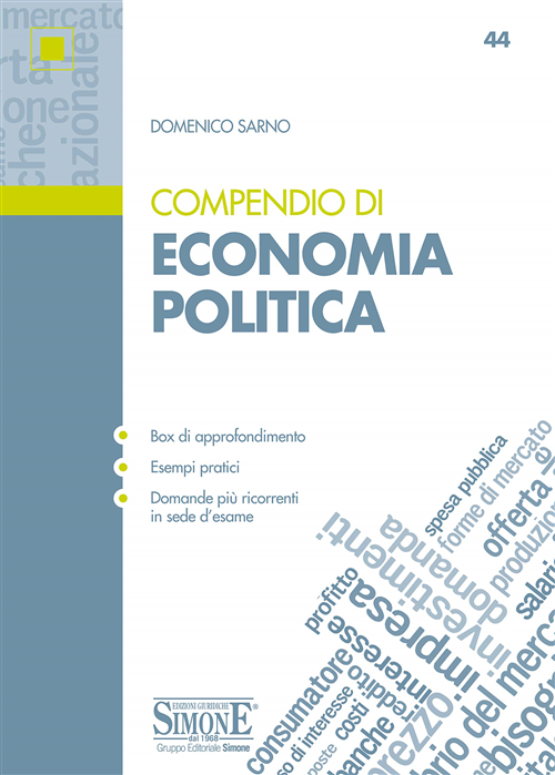 Questo Compendio di Economia Politica nasce dall'esperienza di docente del suo Autore, ed è indirizzato, in particolare, agli studenti universitari dei corsi di laurea triennale di Scienze Politiche, Giurisprudenza ed Economia Aziendale. Esso rappresenta un sussidio utile anche per quanti vogliono apprendere i principali argomenti di Microeconomia e di Macroeconomia per affrontare un concorso pubblico. Il testo è stato realizzato avendo cura di selezionare i principali temi previsti nei corsi di Economia Politica, di cui è proposta una trattazione essenziale, sfrondata cioè di quelle parti di approfondimento più complesse che rendono difficile lo studio. I numerosi esempi sono sempre riferiti alla realtà dei fatti, al fine di rendere più immediata la comprensione delle teorie esposte. Il Compendio si avvale dell'uso sistematico di grafici, che consentono di dare all'argomento analizzato una rappresentazione più chiara e alle conclusioni un carattere più rigoroso. Inoltre, il libro propone, in coda a ogni capitolo, una sintesi degli argomenti trattati per un ripasso veloce, e una serie di domande tra le più ricorrenti in sede di esame, allo scopo di valutare il grado di preparazione raggiunto.