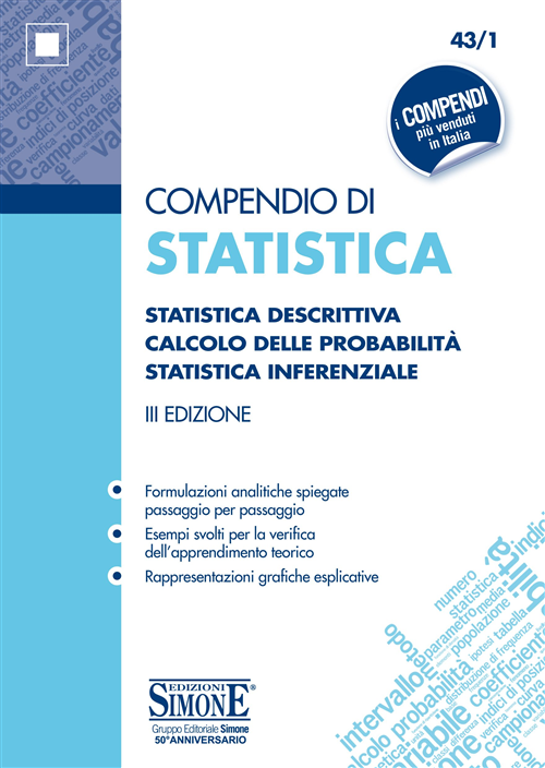 Questo compendio tratta i principali argomenti riguardanti la statistica descrittiva, il calcolo delle probabilit? e la statistica inferenziale. Caratteristiche peculiari del volume sono: lo stile di trattazione degli argomenti, semplice e chiaro ma allo stesso tempo approfondito, supportato da rappresentazioni grafiche esplicative, un corredo di esempi applicativi dei principi e metodi della disciplina con dati tratti dalla realt? nazionale; un questionario finale, alla fine di ogni capitolo, per la verifica dell'apprendimento teorico. Per le sue caratteristiche il testo si indirizza sia agli studenti universitari sia a coloro che si preparano per i concorsi, ma anche ai funzionari e tecnici, di enti pubblici e privati, che utilizzano i metodi e gli strumenti statistici.