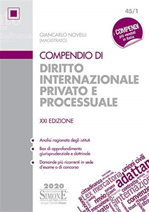 Nel solco della tradizione della casa editrice, l’opera, giunta alla XXI edizione, si ispira a collaudati canoni di sintesi e chiarezza espositiva senza trascurare il continuo aggiornamento normativo e giurisprudenziale, oltremodo necessario in ambito europeo per la costante espansione delle norme comunitarie in materia internazionalprivatistica. Il volume si completa con un’ampia sezione on line che riporta utili schemi riassuntivi di diritto internazionale privato, giurisprudenza, normativa ed eventuali aggiornamenti che si dovessero rendere necessari dopo la pubblicazione del volume. Le estensioni on line sono raggiungibili tramite il Qr Code posto nella quarta di copertina o al link dedicato.
