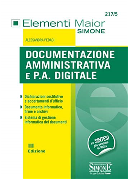 Per molti anni, nell'immaginario collettivo, le farraginose e articolate attività di certificazione sono state ritenute il classico esempio di "pesantezza burocratica" di una pubblica amministrazione incapace di rinnovarsi. A questo stato di cose hanno cercato di porre rimedio alcuni interventi normativi, primo fra tutti il D.P.R. 445/2000, T.U. documentazione, con cui il legislatore ha semplificato l'intero sistema, istituzionalizzando le dichiarazioni sostitutive - che permettono al privato di sostituire atti e certificati mediante la presentazione di una propria dichiarazione - e gli accertamenti d'ufficio, così da ridurre gli oneri amministrativi a carico di cittadini e imprese. In seguito, il Codice dell'amministrazione digitale (D.Lgs. 82/2005), nella veste novellata dalle recenti riforme, ha posto le basi per il superamento della tradizionale amministrazione certificante e cartacea, predisponendo norme specifiche per la dematerializzazione dei documenti e per la trasmissione telematica degli stessi, nell'ottica di una azione amministrativa efficiente. Il volume, attraverso l'analisi dei principali testi legislativi in materia e delle innovative linee guida, nazionali ed europee, propone una sintetica ma completa trattazione della disciplina della documentazione amministrativa e della pubblica amministrazione digitale: semplificazione delle istanze e sistema delle autocertificazioni, accertamenti d'ufficio, documenti elettronici e firme digitali nel contesto della dematerializzazione, protocollo informatico e fascicolo elettronico, sicurezza informatica e tutela della privacy alla luce del Regolamento europeo n. 679/2016 (GDPR) sul trattamento dei dati personali. Dotato, infine, di numerosi box di approfondimento, di schemi esplicativi e di una serie di modelli posti in calce, il libro è particolarmente adatto a studenti e concorsisti, che sempre più spesso nei bandi di concorso devono confrontarsi con queste materie e, al contempo, si pone come rapido strumento di aggiornamento e consultazione per gli operatori del settore.