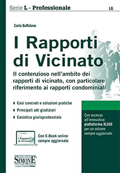 La disciplina dei rapporti di vicinato si presenta articolata e complessa e l'analisi della stessa deve inevitabilmente partire dallo studio e dalla selezione della casistica giurisprudenziale per chiarire l'applicazione delle norme ai casi concreti: questo è lo scopo principale di questo volume. L'opera costituisce una monografia operativa rivolta principalmente ad avvocati e ad amministratori di condominio, il cui obiettivo è di «calare» nella vita quotidiana i principi generali previsti dalla legge e, allo stesso tempo, di consentire l'approfondimento di una normativa spesso molto tecnica, al fine di fornire al lettore le soluzioni pratiche delle controversie dell'ambito condominiale. A tal fine il libro, per facilitare gli operatori del settore, contiene anche un'ampia raccolta ragionata di massime giurisprudenziali nonché, a beneficio della pratica professionale, gli atti giudiziari più frequentemente utilizzati. Chiude il lavoro un'appendice normativa, mirata ad una veloce consultazione delle principali norme (articoli estratti) che disciplinano la materia. Con E-Book online. Associato al volume anche l'accesso all'innovativa piattaforma informatica XLIGO: il libro si trasforma in un E-Book ipertestuale con link interattivi alla normativa e alla giurisprudenza sempre aggiornati.
