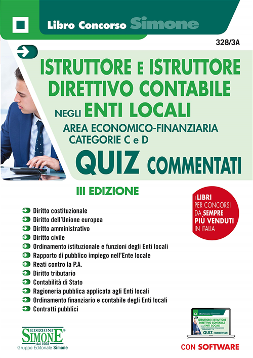 Il volume rappresenta uno strumento utilissimo per la preparazione ai concorsi banditi dagli Enti locali per i ruoli di Istruttore e Istruttore Direttivo Contabile, Istruttore e Istruttore Direttivo Amministrativo-Contabile, nonché per la copertura dei posti afferenti all'area economico-finanziaria. Il testo raccoglie più di 1500 quiz a risposta multipla, commentati e no, sulle materie che sono generalmente richieste alle prove d'esame, ossia: Diritto costituzionale; Elementi di diritto dell'Unione europea; Diritto amministrativo; Elementi di diritto civile; Ordinamento istituzionale e funzioni degli Enti locali; Rapporto di pubblico impiego nell'Ente locale; Reati contro la P.A.; Elementi di diritto tributario; Elementi di contabilità di Stato; Ragioneria pubblica applicata agli Enti locali; Ordinamento finanziario e contabile degli Enti locali; Legislazione in materia di contratti pubblici. Completa il libro un software con migliaia di quiz per infinite simulazioni della prova, accessibile tramite il QR Code rinvenibile nel testo.