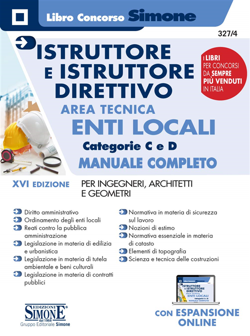 Il Manuale è rivolto a coloro che intendono partecipare ai concorsi banditi dagli Enti locali per i ruoli di Istruttore e Istruttore Direttivo nell'area tecnica (Ingegnere, Architetto e Geometra) - categorie C e D. Questa nuova edizione del testo raccoglie le materie più richieste dai bandi: diritto amministrativo; ordinamento degli enti locali; reati contro la pubblica amministrazione; nozioni di diritto civile; legislazione in materia di edilizia e urbanistica; legislazione in materia di tutela ambientale e beni culturali; legislazione in materia di contratti pubblici; normativa in materia di sicurezza sul lavoro; nozioni di estimo; normativa essenziale in materia di catasto; elementi di topografia; scienza e tecnica delle costruzioni, anche in relazione alle strutture sismo resistenti. Il testo, come tutti quelli pubblicati dalla nostra Casa editrice, si caratterizza per la puntualità degli aggiornamenti normativi, tra cui segnaliamo il D.L. 17-3-2020, n. 18 (cd. decreto «cura Italia»), convertito in L. 24-4-2020, n. 27, recante le misure per il contenimento e la gestione dell'emergnza COVID-19. Infine, il libro è arricchito da numerose espansioni online incentrate sulla normativa d'interesse e sull'approfondimento di taluni argomenti.