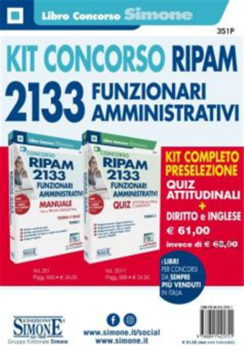 Per completare la preparazione alla prova preselettiva è necessario integrare lo studio di questo Tomo II con il Tomo I: Concorso Ripam 2133 Funzionari Amministrativi (codice 351). Teoria e quiz di: Diritto costituzionale, Diritto amministrativo, Contabilità di Stato e degli enti pubblici. Test in Lingua Inglese. Anche questo libro comprende i quiz ufficiali dei più recenti concorsi RIPAM.