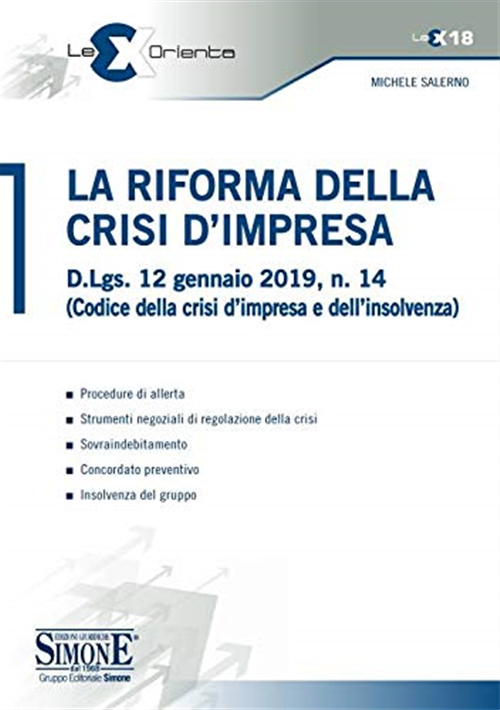 Il libro nasce dalla necessità di effettuare, a ridosso della pubblicazione sulla Gazzetta Ufficiale del Decreto Legislativo 12-1-2019, n. 14, una "prima lettura" delle norme relative agli strumenti di regolazione della crisi e dell'insolvenza, sui quali il legislatore maggiormente confida per la riuscita della riforma. Questi sono il piano attestato di risanamento, gli accordi di ristrutturazione del debito, la procedura da sovraindebitamento e il concordato preventivo oltre, ovviamente, alla nuova procedura dell'allerta e composizione assistita della crisi. Il volume è corredato di un'Appendice normativa che riporta le norme del D.Lgs. 14/2019 che sono state oggetto di trattazione. Tra i contenuti più rilevanti si segnalano: Introduzione del nuovo istituto dell'allerta; Procedimento unitario per l'accesso alle procedure di regolazione della crisi o dell'insolvenza; Piani attestati di risanamento e accordi di ristrutturazione dei debiti; Procedure di composizione della crisi da sovraindebitamento; Concordato preventivo; Regolazione della crisi o insolvenza del gruppo.
