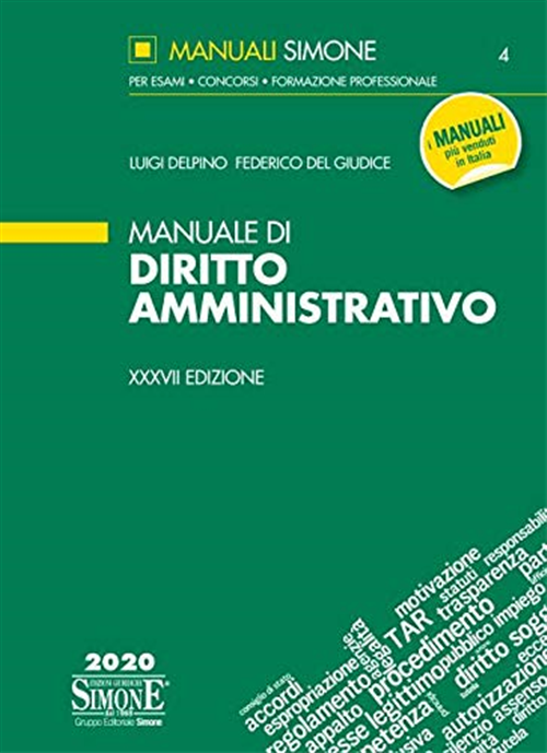 Le numerose riforme normative e gli orientamenti giurisprudenziali che costantemente investono il diritto amministrativo mettono in evidenza i due aspetti che caratterizzano questa materia: dinamicità e praticità. L'esercizio dinamico del potere pubblico e i risvolti concreti della sua applicazione nei rapporti tra la P.A. e i cittadini rappresentano, dunque, le due chiavi di lettura da utilizzare per cogliere la ratio di una disciplina molto complessa come il diritto amministrativo. Questa XXXVII edizione del Manuale di Diritto Amministrativo si pone proprio nell'ottica di voler «inquadrare» la materia secondo le direttive indicate, e, in tale prospettiva, gli argomenti sono analizzati sotto il duplice punto di vista delle riforme che hanno delineato la disciplina dei singoli istituti e dell'applicazione concreta che della stessa ne fanno i giudici, calandola nelle specifiche fattispecie sottoposte al vaglio giurisdizionale. Il testo si presenta, quindi, come un'opera di ampio respiro, fruibile e indirizzata sia ai corsi universitari che allo studio specialistico, risultando, al tempo stesso, un utile strumento di consultazione e aggiornamento per tutti i professionisti del settore. Per agevolare lo studio, infine, eventuali aggiornamenti ed altre risorse utili sono disponibili on line, puntando il proprio smartphone sul QR Code posto in copertina oppure accedendo alla pagina www.simone.it/d/4.