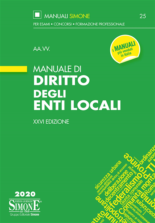 Il manuale, giunto alla XXVI edizione, analizza in maniera completa e lineare il Diritto degli enti locali, tenendo conto dei più recenti interventi normativi che hanno inciso sulla materia. Ci si riferisce, da ultimo, al decreto Cura Italia (D.L. 17 marzo 2020, n. 18, conv. con modif. in L. 24 aprile 2020, n. 27) ma anche al decreto milleproroghe (D.L. 30 dicembre 2019, n. 162, conv. con modif. in L. 28 febbraio 2020, n. 8). Inoltre, in ambito finanziario, rilevano la legge di bilancio 2020 (L. 27 dicembre 2019, n. 160) e il cd. decreto fiscale (D.L. 26 ottobre 2019, n. 124, conv. con modif. in L. 19 dicembre 2019, n. 157). La trattazione presenta inoltre interventi dottrinari e giurisprudenziali e box di approfondimento, che rendono il testo un valido strumento di preparazione e di aggiornamento in vista del superamento di esami universitari e pubblici concorsi.