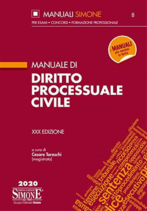La trentesima edizione del Manuale di diritto processuale civile si presenta, come sempre, aggiornata con la più recente produzione normativa e con gli ultimi orientamenti della giurisprudenza di legittimità, anche delle Sezioni Unite, sul rito civile. Nell'ultimo anno si registrano la L. 12-4-2019, n. 31, in tema di riforma della class action, la cui entrata in vigore è stata però posticipata al 19-11-2020 dal D.L. 30-12-2019 n. 162, conv. in L. 28-2-2020, n. 8, nonché le modifiche apportate al codice di rito, da parte della stessa L. 28-2-2020, n. 8, in materia di esecuzione forzata, in particolare in relazione alle modalità di custodia dell'immobile pignorato. È stata, altresì, prorogata al 31-10-2025 l'entrata in vigore della riforma sull'ampliamento delle competenze, per materia e per valore, della magistratura onoraria. Occorre, poi, richiamare la normativa emergenziale volta a contrastare l'epidemia da Covid-19, che in questi mesi sta colpendo e funestando il nostro Paese. In particolare, in relazione al processo civile, rilevanti appaiono le disposizioni dettate dal D.L. 17-3-2020, n. 18 e dal D.L. 8 aprile 2020, n. 23, in relazione alla sospensione dei termini processuali ed alla previsione di trattazione delle udienze con modalità alternative a quelle tradizionali. Tutte le novità normative e le più rilevanti pronunce della Suprema Corte (tra le quali risultano significative quelle in tema di mediazione obbligatoria ex D.Lgs. n. 28/2010, vizi della C.T.U., principio della "ragione più liquida", efficacia riflessa del giudicato, patrocinio a spese dello Stato) e della Corte costituzionale (in particolare, in tema di notifiche telematiche) sono state puntualmente riportate ed analizzate nel presente volume, ed arricchite anche dai primi orientamenti dottrinali e della giurisprudenza di merito, senza tralasciare il confronto, almeno per gli argomenti di maggiore interesse, con le normative previgenti e la disciplina transitoria. L'apprendimento della materia è agevolato da una serie di schemi e tavole di sintesi che offrono, a chiusura di capitolo, un quadro riepilogativo, ed evidenziano gli aspetti pratico-operativi del rito civile. Il testo, così strutturato, rappresenta, dunque, un aggiornato e valido ausilio, sia per studenti e professionisti, che per quanti vogliano approfondire la conoscenza del processo civile, alla luce delle importanti innovazioni che, negli ultimi anni, lo hanno caratterizzato.