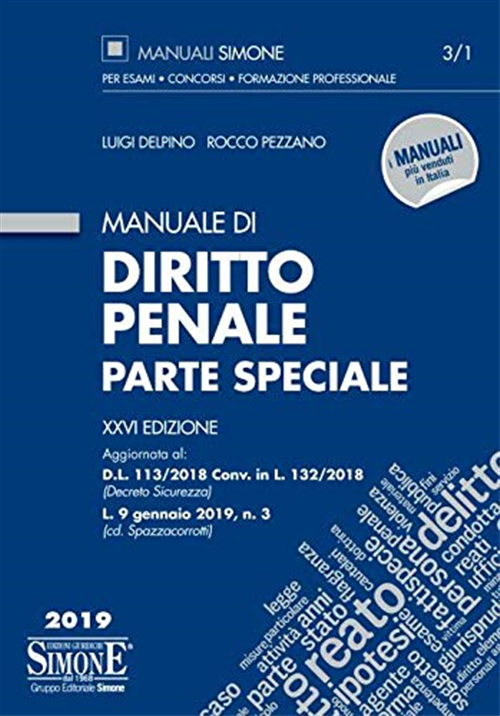 Questa nuova edizione del manuale viene data alle stampe a seguito delle numerose riforme intervenute nell'alveo del codice penale. Il lavoro, che prende in esame tutte le fattispecie di reato di fonte codicistica, è strutturato in tre parti: la prima relativa ai delitti, la seconda alle contravvenzioni e la terza alle principali figure di reati di fonte legislativa. Per ciascuna fattispecie viene trattato l'interesse tutelato, l'elemento oggettivo e soggettivo, la pena e gli istituti processuali; la disamina tiene conto dei più significativi orientamenti dottrinali e delle questioni maggiormente dibattute in giurisprudenza. Fra le novità legislative di cui si tiene conto nella presente edizione, si segnalano i correttivi strutturali e sanzionatori al sistema dei reati contro la pubblica amministrazione ed alle relative pene accessorie (L. 9-1-2019, n. 3, cd. «legge spazza-corrotti») e la reintroduzione della cd. «mendicità molesta» (D.L. 4-10-2018, n. 113, conv. in L. 1-12-2018, n. 132, cd. «decreto sicurezza»). Un dettagliato indice analitico-alfabetico completa e chiude il volume, permettendo un rapido reperimento dell'argomento di interesse.