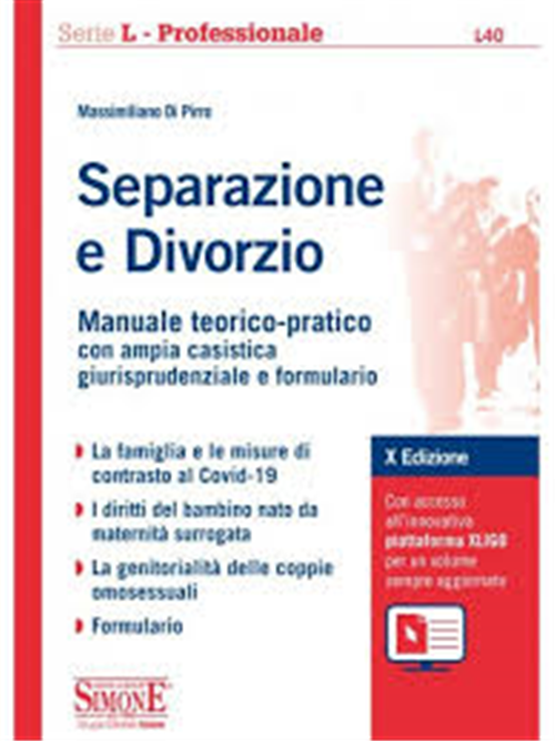 Come nelle precedenti edizioni il volume è corredato, infine, da un formulario sulle unioni civili e su tutte le fasi, giudiziali e stragiudiziali, dei procedimenti di separazione e di divorzio.