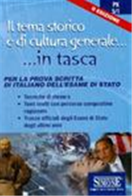 Questo volume propone un'ampia scelta di temi svolti per il superamento della prima prova scritta dell'esame di maturità. Le tipologie di composizione sono quelle più tradizionali, il tema storico e il tema di attualità e cultura generale, che permettono al candidato una maggiore libertà argomentativa e una più personale interpretazione della traccia proposta. In apertura del volumetto, un'utile introduzione spiega dettagliatamente le tecniche necessarie alla stesura di un buon elaborato. Il testo si articola poi in due sezioni. La Parte Prima è dedicata al tema storico: sono sviluppati argomenti che riguardano il periodo storico oggetto di studio dell'ultimo anno e che va dall'Unità d'Italia agli avvenimenti più vicini a noi, non trascurando aspetti della contemporaneità, come l'allargamento dell'Europa a 27 paesi membri e la presidenza di Barack Obama. La Parte Seconda propone temi svolti su argomenti di attualità e di cultura generale: dai pregiudizi razziali alle catastrofi naturali, dalla tutela dei diritti dei minori alle nuove tecnologie, dalla globalizzazione allo sviluppo sostenibile. Tutti i temi presentano un percorso compositivo articolato in diversi punti, per permettere al candidato di seguire lo sviluppo argomentativo dell'elaborato e per abituarlo alla consequenzialità nell'esposizione delle proprie conoscenze e delle proprie idee. In chiusura un'utile Appendice propone le tracce inerenti alle tipologie C e D degli Esami di Stato degli ultimi anni.