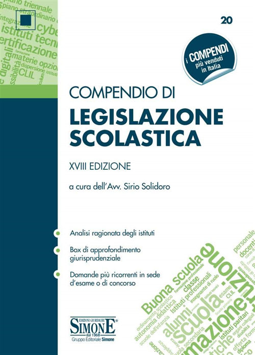 La legislazione scolastica è in continua evoluzione e tiene conto dei repentini sviluppi che accadono nel mondo della società e della cultura. Nel presente volume sono analizzati i principali istituti giuridici della legislazione scolasti-ca, anche alla luce delle recenti riforme. È stata pertanto illustrata la normativa del recente «Decreto Cura Italia» e del «Decreto Scuola» intervenuti a seguito della nuova situazione emergenziale cha ha totalmente modificato il mondo delle relazioni, comprese quelle scolastiche. Il volume affronta altresì la normativa riguardante il «Decreto salvaprecari» intervenuta dopo la riforma della cd. Buona Scuola. Si fa menzione, inoltre, del recente c.d. sdoppiamento del Ministero, tramite cui il legislatore ha previsto il ritorno a due Ministeri distinti: uno dell’Istruzione e l’altro dell’Università e Ricerca. Proprio al riguardo occorre ribadire come nel linguaggio comune, tuttavia, quanto meno nella fase iniziale, si continui ad utilizzare l’acronimo M.I.U.R, che indicava il Ministero prima del predetto sdoppiamento; ne deriva che tale acronimo dovrà essere inteso, anche laddove presente in questo volume, nel senso di Ministero dell’Istruzione o dell’Università e Ricerca in base ai diversi contesti di riferimento se, appunto, quello scolastico o quello universitario. Un importante aspetto, proprio in ragione della peculiarità della legislazione scolastica, riguarda la necessità di volgere costantemente lo sguardo agli stessi testi normativi di riferimento; in modo che, la lettura integrale della stessa disposizione normativa, possa aiutare la preparazione. Infine, è stata ripercorsa la normativa riguardante le modalità di assunzione del personale docente alla luce delle recenti riforme intervenute nel mondo della scuola.